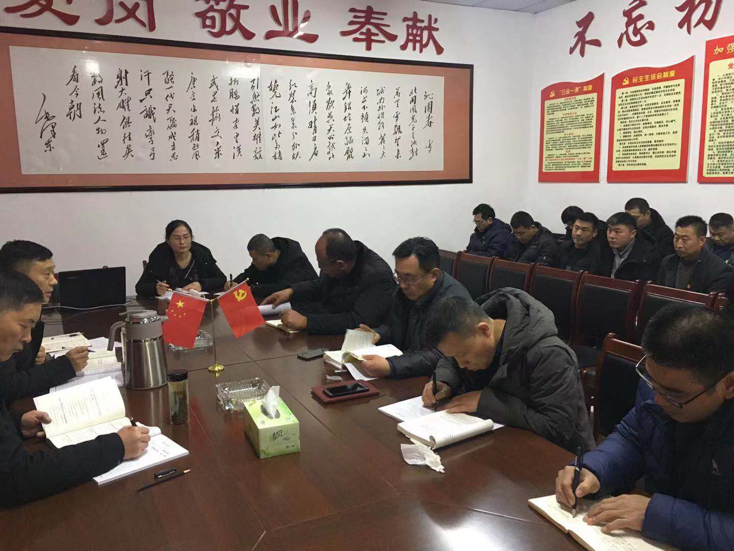 會上,黨支部書記宋慶國同志提出,在新的一年里,要從“新”開始,拿出“新”干勁,制定“新”目標,把深入學習貫徹習近平新時代中國特色社會主義思想再推“新”高潮。每位黨員干部要自覺用這一思想武裝頭腦、指導實踐、推動工作,深入理解掌握習近平新時代中國特色社會主義思想,進一步樹立“四個意識”,增強“四個自信”。要轉變態(tài)度,做一個腳踏實地的“實干家”,切實把思想和行動統(tǒng)一到習近平新時代中國特色社會主義思想上來,統(tǒng)一到中央重大決策部署上來。