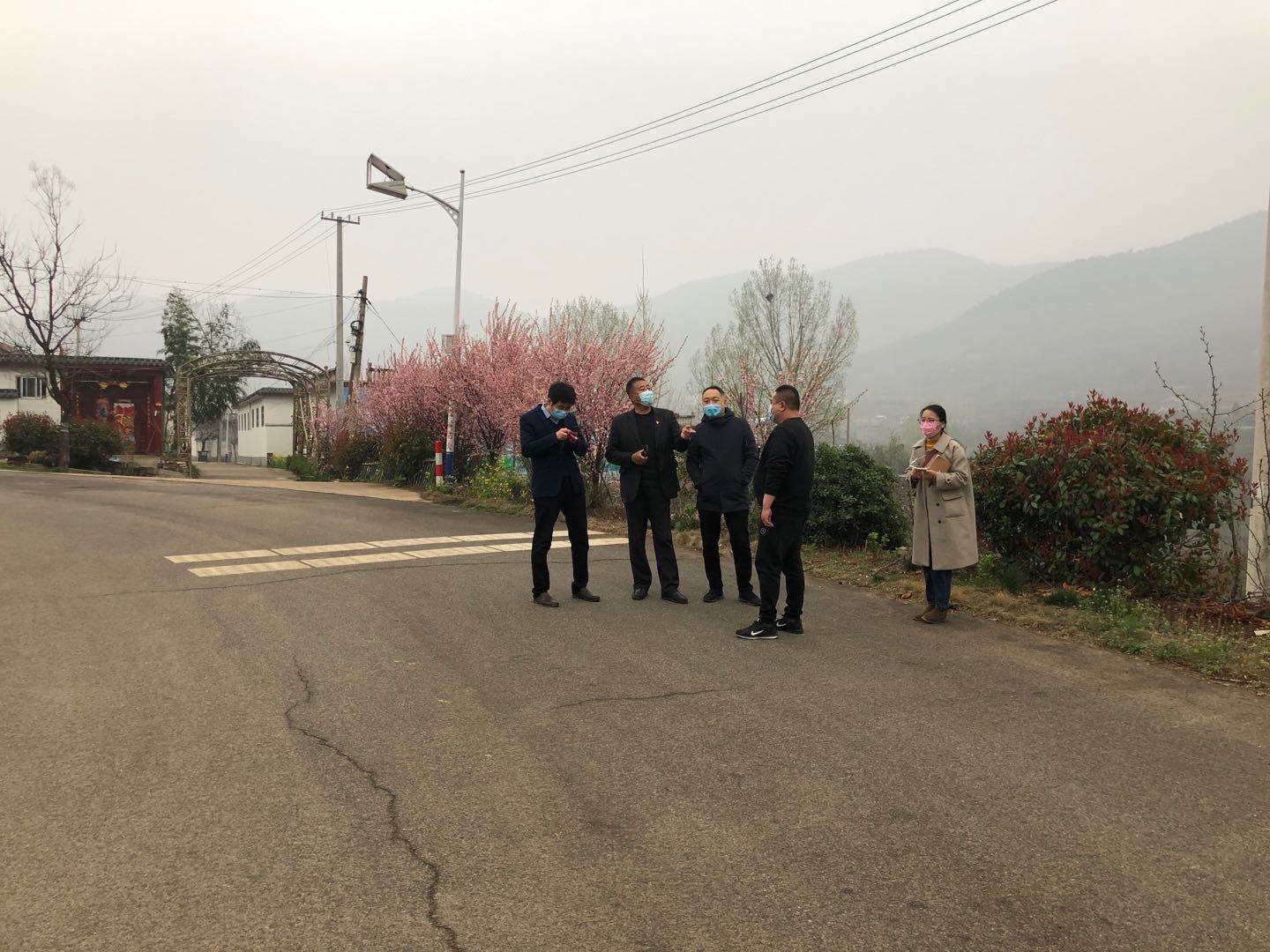 圖為:山亭區(qū)北莊鎮(zhèn)人民政府領(lǐng)導(dǎo)與棗莊市水利開發(fā)有限公司副總經(jīng)理連永、棗莊市水利勘測(cè)設(shè)計(jì)院周明主任踏勘傳統(tǒng)村落項(xiàng)目現(xiàn)場(chǎng)